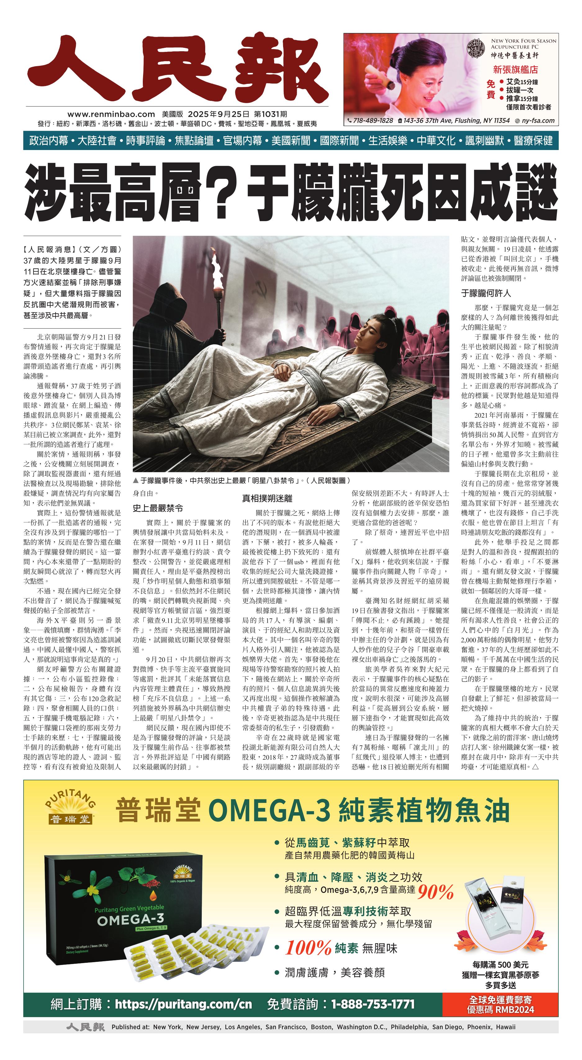|<<  <<前一頁 < 返回 第1031期  (2025年9月25日)A1版: 頭版 下一頁>>  >>|