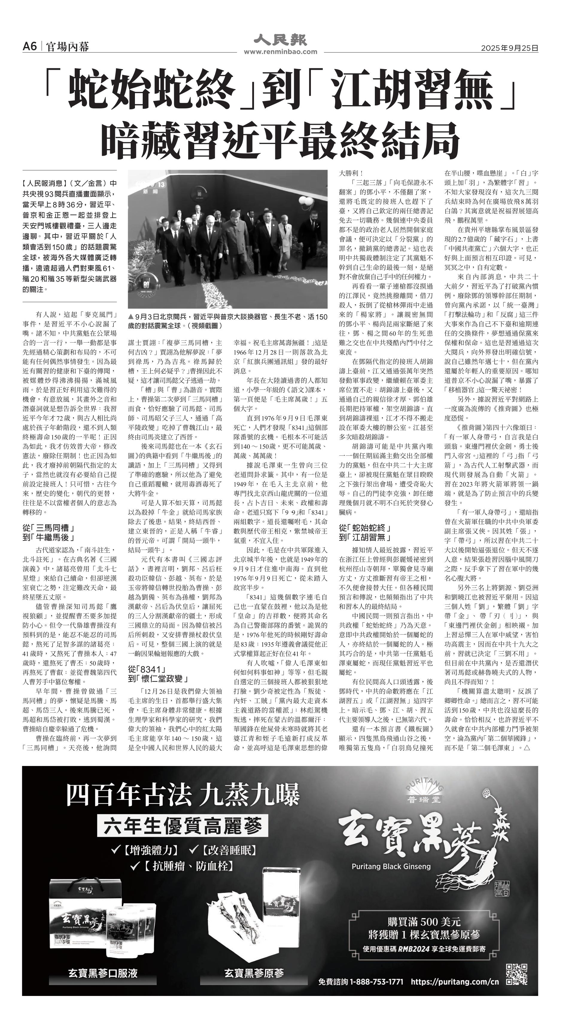 |<<  <<前一頁 < 返回 第1031期  (2025年9月25日)A6版: 官場內幕 下一頁>>  >>|