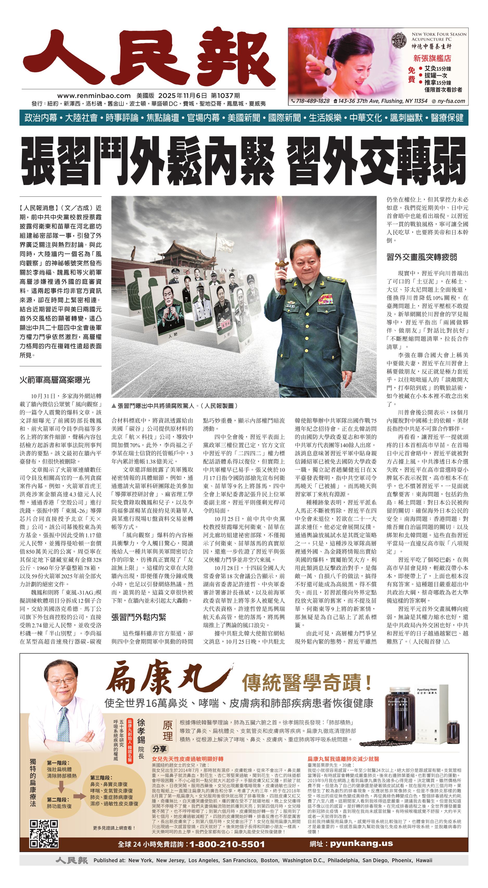 (2025年11月6日)A1版: 頭版
