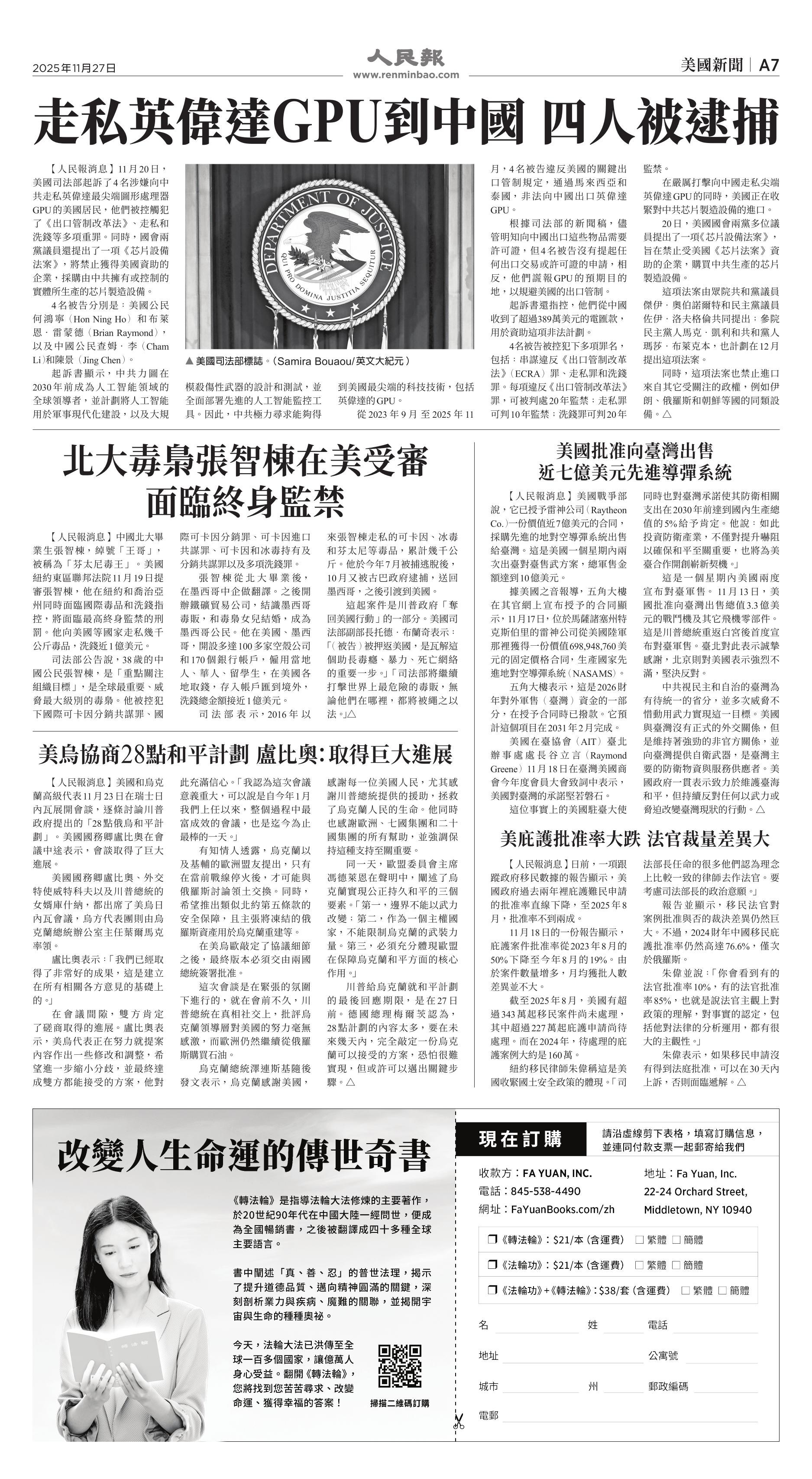 |<<  <<前一頁 < 返回 第1040期  (2025年11月27日)A7版: 美國新聞 下一頁>>  >>|
