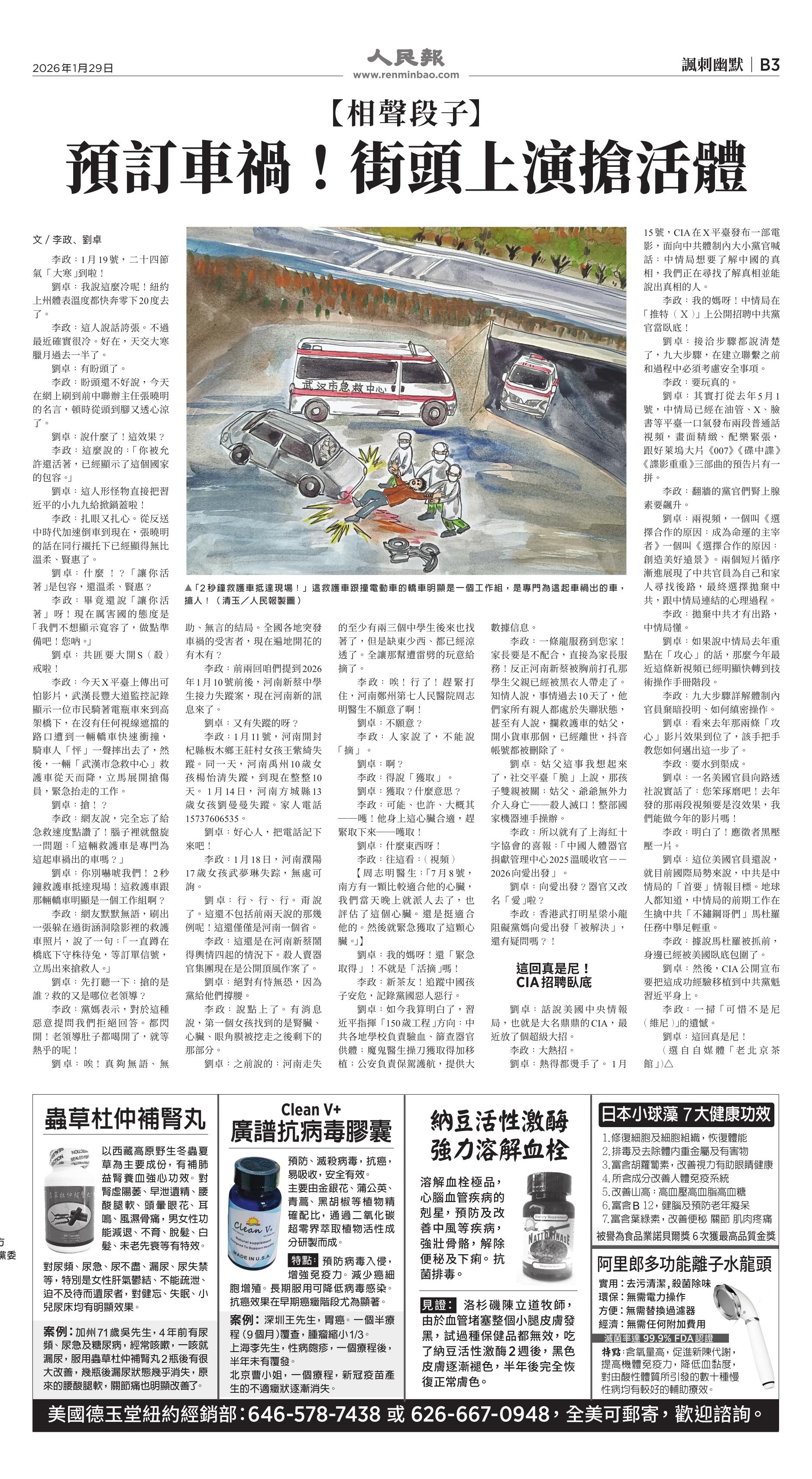 (2026年1月29日)B3版: 諷刺幽默