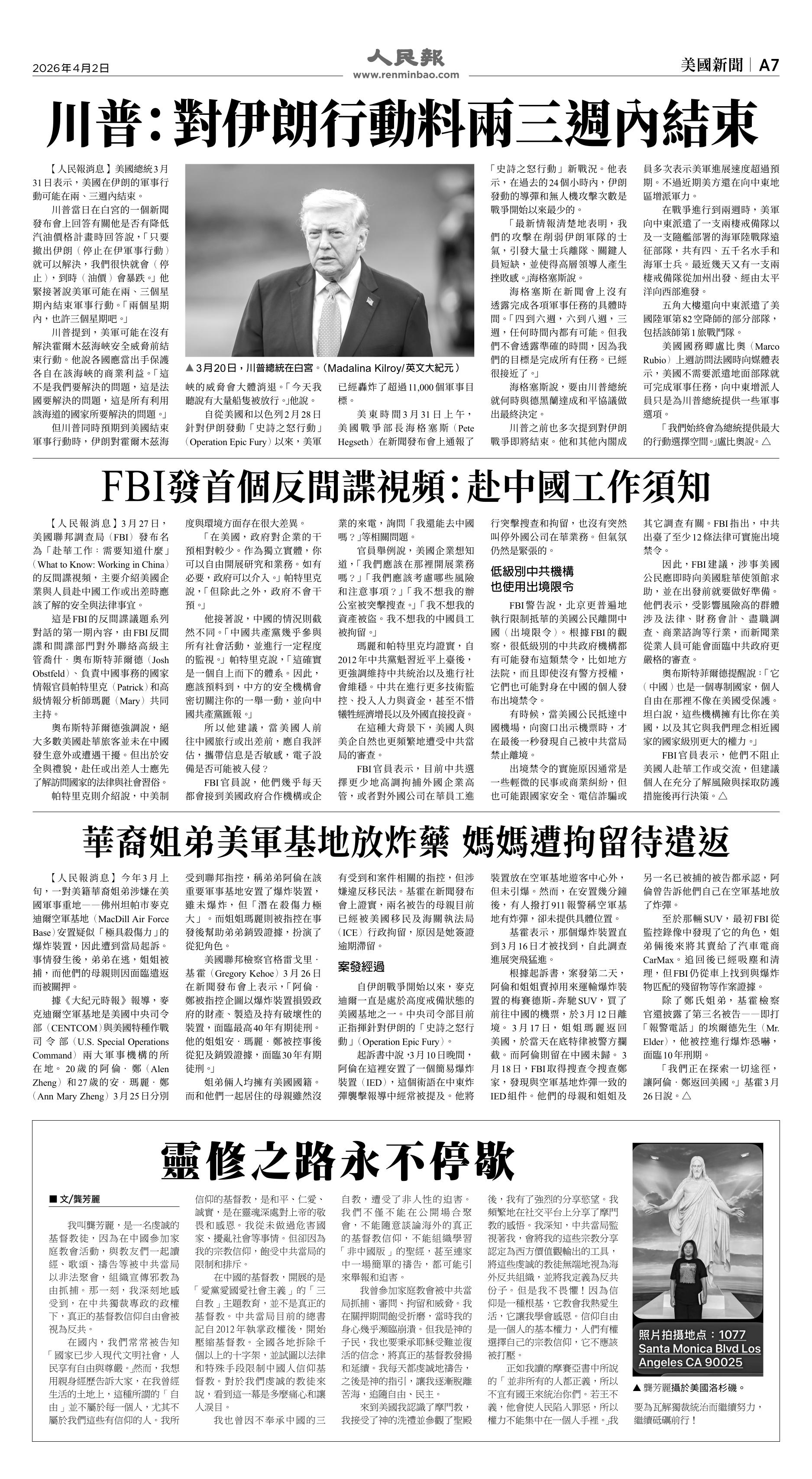 (2026年4月2日)A7版: 美國新聞