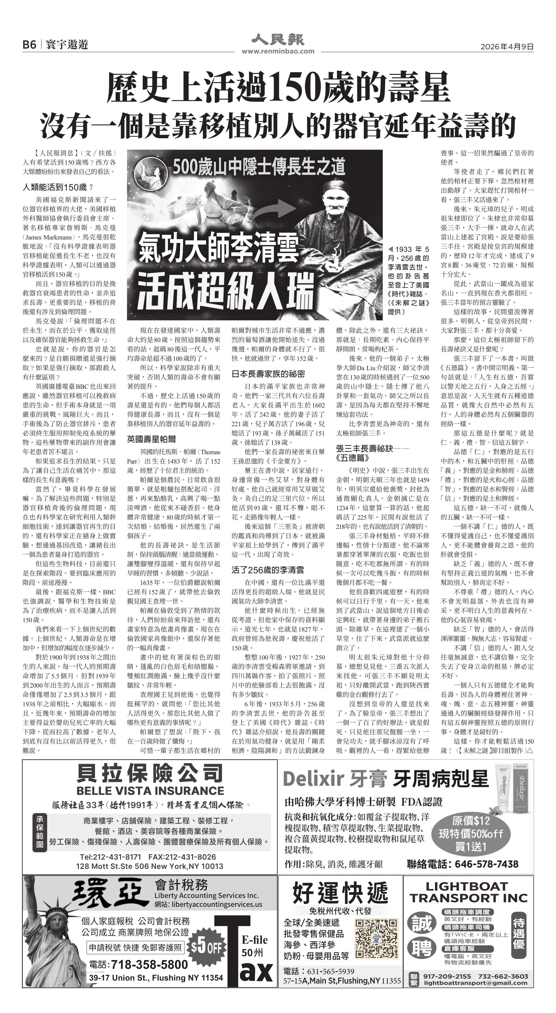 |<<  <<前一頁 < 返回 第1059期  (2026年4月9日)B6版: 寰宇遨游 下一頁>>  >>|