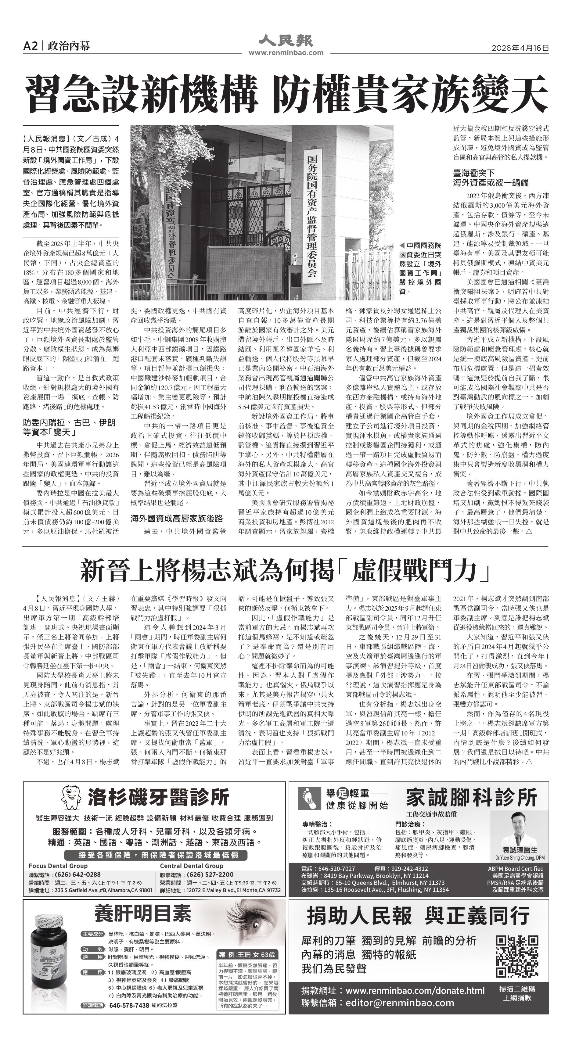 (2026年4月16日)A2版: 政治内幕