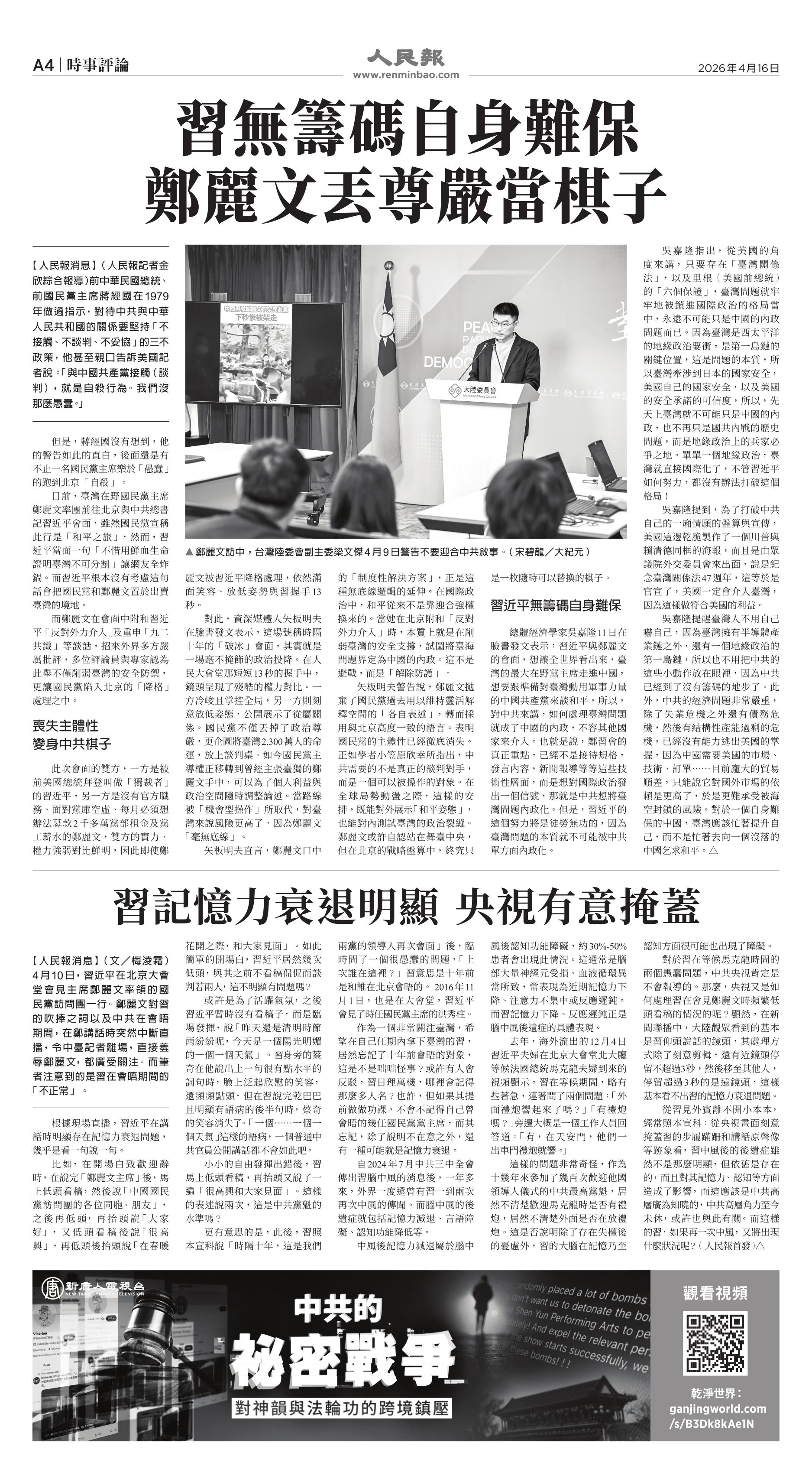 (2026年4月16日)A4版: 时事评论