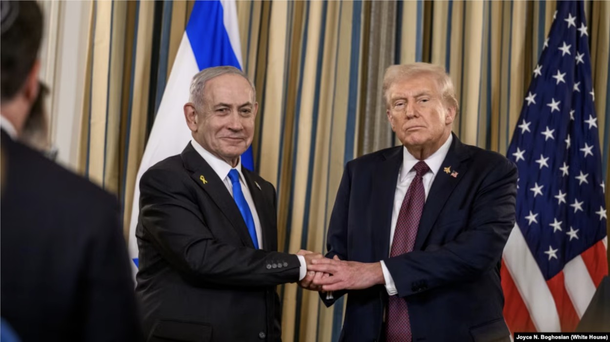 據美國之音報導,星期一(9月29日),特朗普與本雅明.內塔尼亞胡(Benjamin Netanyahu)一同在白宮向媒體介紹他所說的「和平原則」的時候,感謝阿拉伯和穆斯林國家以及他的歐洲盟友在制定美國計畫方面提供的幫助。