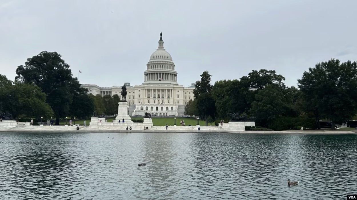 美國國會大廈及倒影池。(2025年9月30日/VOA)