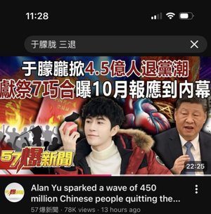 【人民报消息】中国男星于朦胧坠楼身亡,至今已经逾一个月,海内外民众为他讨公道的声浪依然不减,并带起又一波中国和旅居海外的中国人声明“退党、退团、退队”的三退浪潮。这一现象不但引发海外观察者的关注,还成为台湾媒体热报的题材。