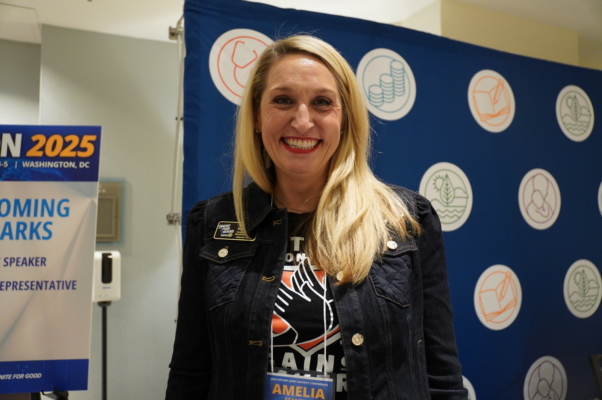 2025年10月3日,國際扶輪社在華盛頓DC的威斯汀酒店放映獲獎紀錄片《國有器官》。圖為扶輪社區域總監Amelia Stansell。(張奕/大紀元)