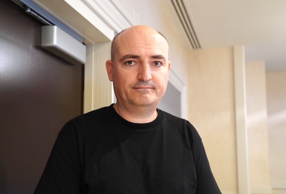 2025年10月3日,國際扶輪社在華盛頓DC的威斯汀酒店放映獲獎紀錄片《國有器官》。圖為美國天主教大學從事宗教研究的圖書管理員塔拉斯·茲維爾(Taras Zvir)。(張奕/大紀元)
