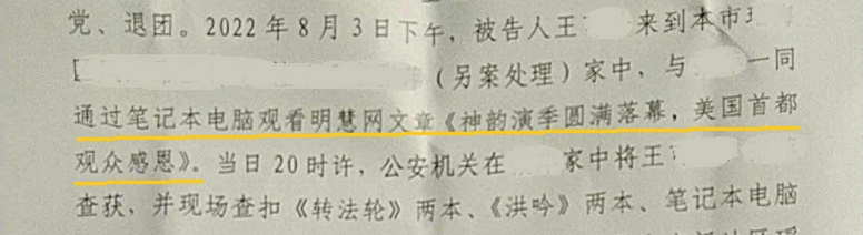 这是当局将观看神韵报导作为所谓“犯罪证据”,进行非法抓捕和判刑的一个典型迫害案例。
