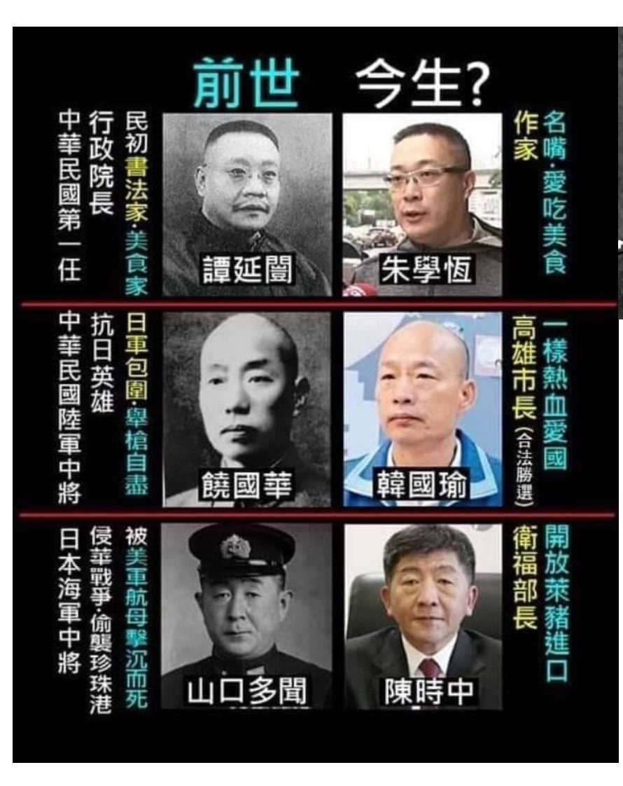最近反日的话题也很热闹。有多少年轻人知道,中共勾结日本杀了无数国军将士,比如饶国华。毛泽东多次感谢日本侵华,把中共邪党捧上大位。有意思的是,饶国华撞脸韩国瑜,陈时中撞脸山口多闻,川普撞脸巴顿。是转世再生吗?