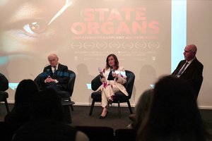 加拿大国际人权律师麦塔斯(David Matas)、澳洲国际人权律师布里吉特(Madeleine Bridgett,中)、澳洲法律大法佛学会发言人戴乐(John Deller)出席电影《国有器官》座谈会。(Jason Lin/大纪元)