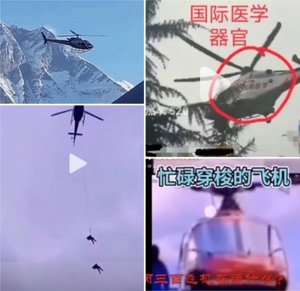 王相軍在西藏無人區上空頻繁拍到“國際醫學”直升機來往穿梭,這些直升機被懷疑用來運送器官。(新唐人合成)