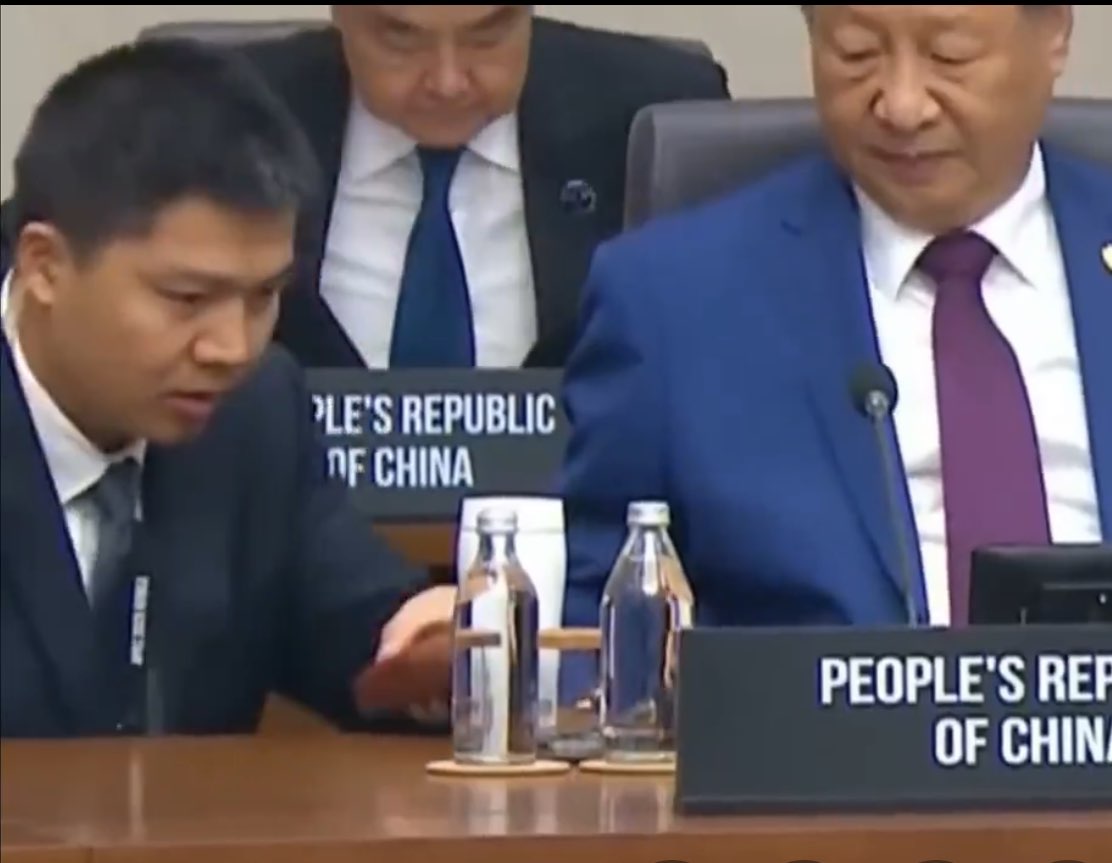 【人民报消息】(人民报记者文谨报导)中共党魁习近平和一众高官出席韩国APEC会议期间,发生许多让民主国家领导人感到不可思议的笑料,成为茶余饭后的谈资。此外,韩国媒体还拍下诡异一幕,在习近平刚刚落座时,一名随身侍卫随即上前,悄悄递给他三样东西。网民猜测,习近平疾病缠身,特工给他送的东西,其中有药。