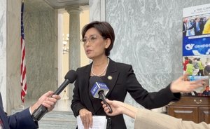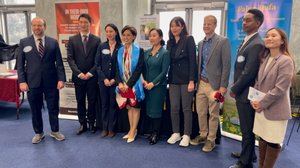 金映玉議員在現場接受媒體採訪。(英文NTD圖片)