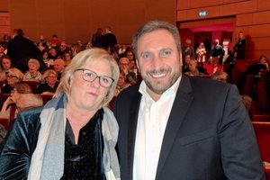 2026年1月20日晚,石化及石油化工领域的企业董事长Alessandro Pagani与太太Annamaria观看了神韵纽约艺术团在意大利米兰阿尔钦博第剧院(Teatro degli Arcimboldi)的第八场演出。(Leo Botnarenko/大纪元)