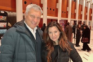 2026年1月20日晚,在意大利米兰阿尔钦博第剧院(Teatro degli Arcimboldi),全球5百强企业负责人Fabio Castiglioni与太太Leina Garcia一同观看了神韵纽约艺术团在当地的第8场演出。(Leo Botnarenko/大纪元)