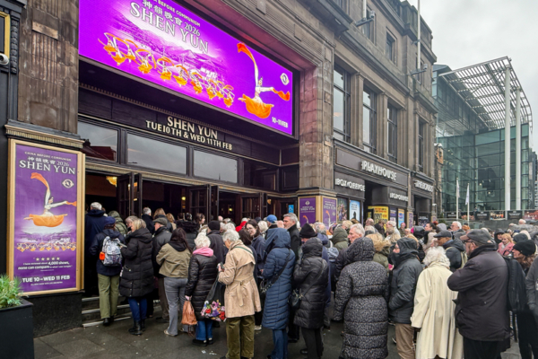 2026年2月11日下午,观众走入英国爱丁堡剧场(Edinburgh Playhouse),等待观看神韵环球艺术团的演出。(文清/大纪元)