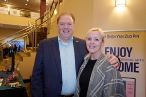 2026年2月11日晚,企业高管Chuck Bolen与太太Amy Bolen一起欣赏了神韵世界艺术团在美国杰克逊维尔/橙园约翰河州立学院长尾鲨号角中心(Thrasher-Horne Center at St. Johns River State College)的第二场演出。(林南宇/大纪元)
