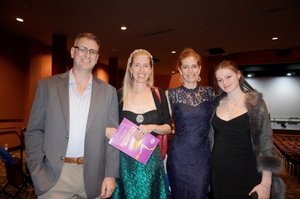 2026年2月11日晚,在美国杰克逊维尔/橙园佛罗里达杰克逊维尔约翰河州立学院长尾鲨号角中心(Thrasher-Horne Center at St. Johns River State College),海军通信经理Lake Bouder(左一)与太太Teri(左二)以及姐妹Beth(右二)及其女儿Edie(右一)一同观看了神韵世界艺术团在当地的第二场演出。(林南宇/大纪元)