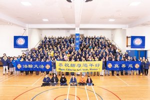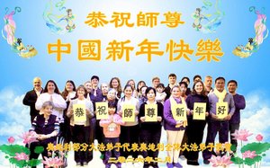 蒙特利爾法輪功學員向李大師拜年。(明慧網)