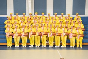 紐約腰鼓隊法輪功學員恭祝李洪志師父新年好。(戴兵/大紀元)