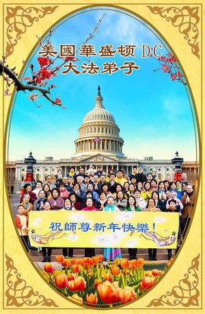 美國華盛頓DC法輪功學員恭祝李大師過年好。(明慧網)