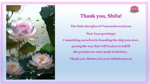 委內瑞拉法輪功學員恭祝李大師新年好。(明慧網)