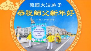 德國全體法輪功學員恭祝李大師新年好。(明慧網)