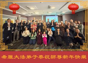 希臘法輪功學員恭祝李大師新年快樂。(明慧網)