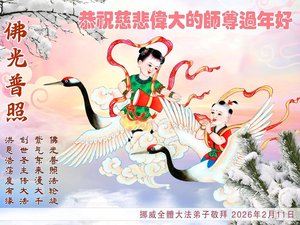 恭祝大法師尊新年快樂身體健康萬事如意!法輪大法好真善忍好!