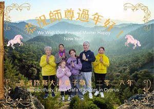塞浦路斯法輪功學員恭祝李大師新年快。(明慧網)