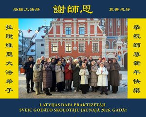 拉脫維亞法輪功學員恭祝李大師新年快樂。(明慧網)