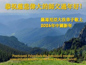 羅馬尼亞法輪功學員恭祝李大師中國新年快樂。(明慧網)