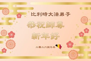 比利時法輪功學員恭祝李大師過年好。(明慧網)