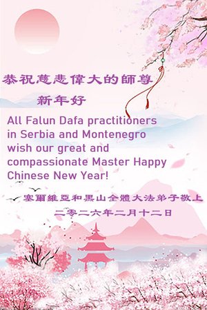 塞爾維亞和黑山全體法輪功學員恭祝李大師新年快樂。(明慧網)