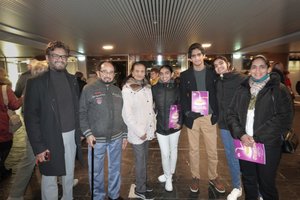 2026年2月17日,Didier Delavictoire先生(左一)与家人观看了神韵在法国的演出。(亦凡/大纪元)