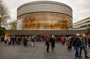 2026年2月19日下午,美國神韻世界藝術團在法國南特市議廳(Cité des Congrès de Nantes)進行第三場演出。圖為演出結束後,觀眾離開劇院。(傅潔/大紀元)