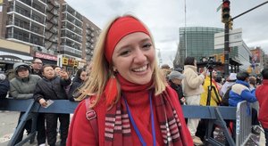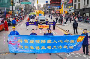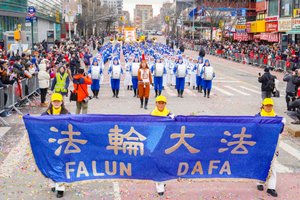 【人民报消息】“返本归真迎新年,春满人间新三才”,2月21日,丙午马年大年初五,纽约中国新年大游行在北美最大的华人社区法拉盛举行,观众人山人海。 法轮大法团体共襄盛举,队伍壮观,色彩缤纷,中华文化气息浓郁,展现法轮大法和“真、善、忍”的美好,给民众带来喜庆、祥和和祝福。有观众说:希望法轮功回到中国大陆游行。 法轮功队伍壮观 《辞旧迎新祝愿歌》在街头回荡 始于1996年的法拉盛新年游行,是北美地区规模最大的新年游行,今年踏入30周年的里程碑,场面喜庆、热闹,法拉盛中心区锣鼓声声、龙腾狮跃,贺岁声不绝于耳。 法轮功团体每年参加这个游行,已有二十多年,给华人和各族裔的民众拜年送福。他们的队伍流光溢彩,中华传统文化色彩浓厚。 法轮功的队伍有气势如虹的天国乐团、“天宫仙境”花车、喜庆的舞龙舞狮、威震十方的太鼓、婀娜多姿的莲花舞蹈、步伐整齐的旗阵、英姿飒爽的腰鼓队⋯⋯多姿多彩,亮丽纷呈,让人目不暇接。 特别是身穿古代将士服饰的天国乐团一出场,立即震撼全场,鼓乐齐鸣,响彻云霄,气势磅礴,如万马奔腾,巨大的慈悲能量场覆盖街区,街上两旁观众的眼睛聚焦,他们纷纷举起手机拍照、录像。