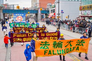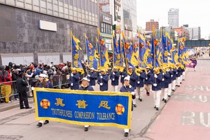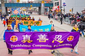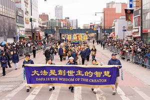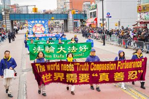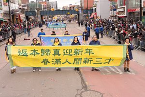 2月21日丙午马年大年初五,法轮功学员参加了纽约市最大华人聚居地——法拉盛一年一度的中国新年大游行活动。(戴兵/大纪元)