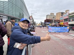 法轮功的队伍中一首喜庆、欢快的《辞旧迎新祝愿歌》不断在街头回荡,给民众送福:“愿你得平安,愿你结善缘,愿你时刻存善念,越走路越宽。法轮大法好,字字金光闪,愿你记住真善忍,来年再相见!” 中西族裔民众人山人海 盛赞法轮功 法拉盛中心区的人流量每天超过10万人次,是仅次于纽约时代广场的纽约市最繁华的社区,观看游行的中西族裔民众人山人海,扶老㩦幼,在Main街上挤得里三层外三层。他们的脸上洋溢著笑容,纷纷对法轮功学员的队伍赞不绝口。 “每年最期待法轮功队伍!”