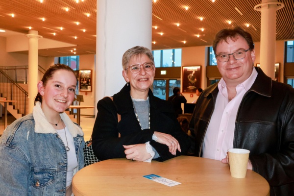 2026年2月22日下午,音乐世家Bertrand Bussard先生和妻子Anne与女儿Lara一起在瑞士洛桑Beaulieu剧院(Théâtre de Beaulieu)观看了神韵国际艺术团今年在洛桑的第四场演出。(张妮/大纪元)