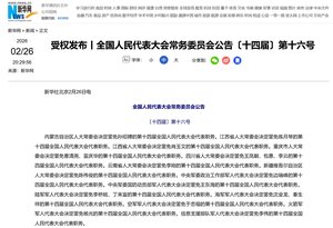 2026年2月26日,中共全國人大常委員會發布公告,罷免19名全國人大代表的職務,其中包括九名解放軍代表。但名單中沒有軍委副主席張又俠和軍委委員劉振立。(網頁截圖)