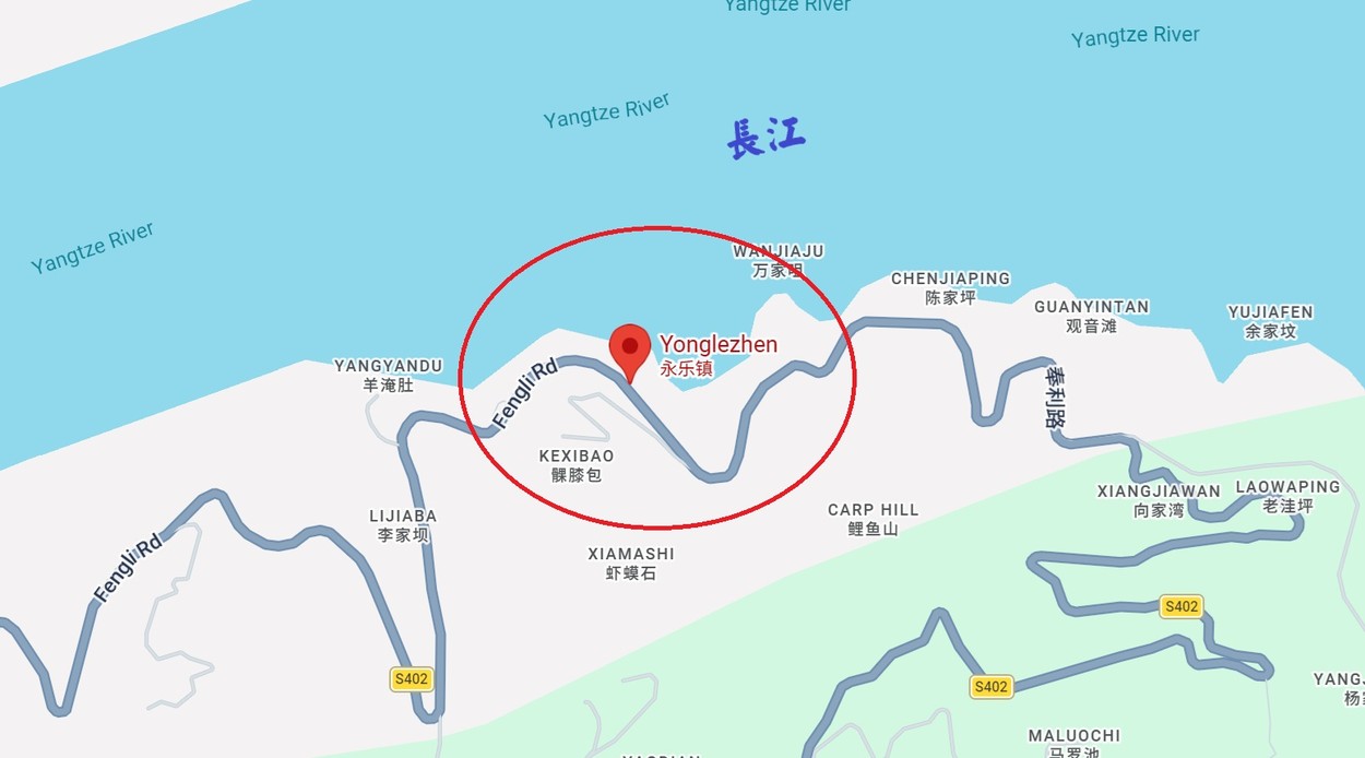重慶奉節縣永樂鎮大壩村就在長江邊上,但是村民長期存在生活用水困難和灌溉困難。(谷歌地圖)