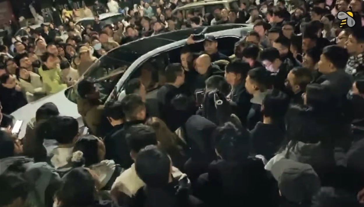 3月28日晚间,湖北武汉江夏区黄家湖发生600名居民游行,抗议当局在幼儿园和民居附近修建电池厂。当晚有十多名抗议者被抓捕。(视频截图)