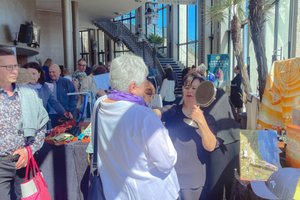 2026年4月8日下午,神韵环球艺术团在德国菲森新天鹅堡音乐厅(Festspielhaus Neuschwanstein)上演了今年当地第二场演出。观众兴致勃勃地挑选精美的神韵商品。(君卓/大纪元)
