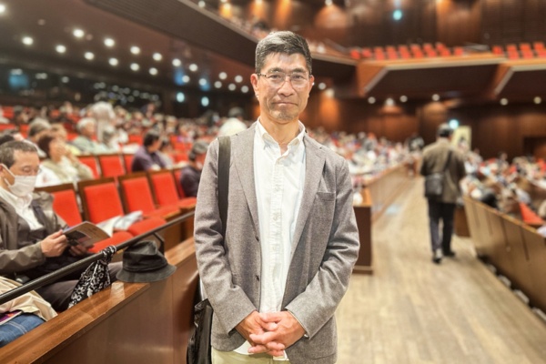 2026年4月13日下午,日本半導體設備的資深專家國香仁(Kunika Hitoshi)觀看了神韻新紀元藝術團在八王子J-COM廳(J-COM Hall Hachioji)舉行的第二場演出。(徐正/大紀元)