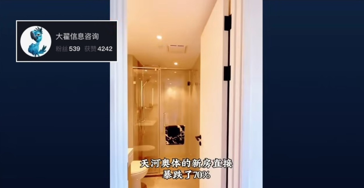 2026年4月,廣州天河奧運中心附近的房價下跌70%。(視頻截圖)