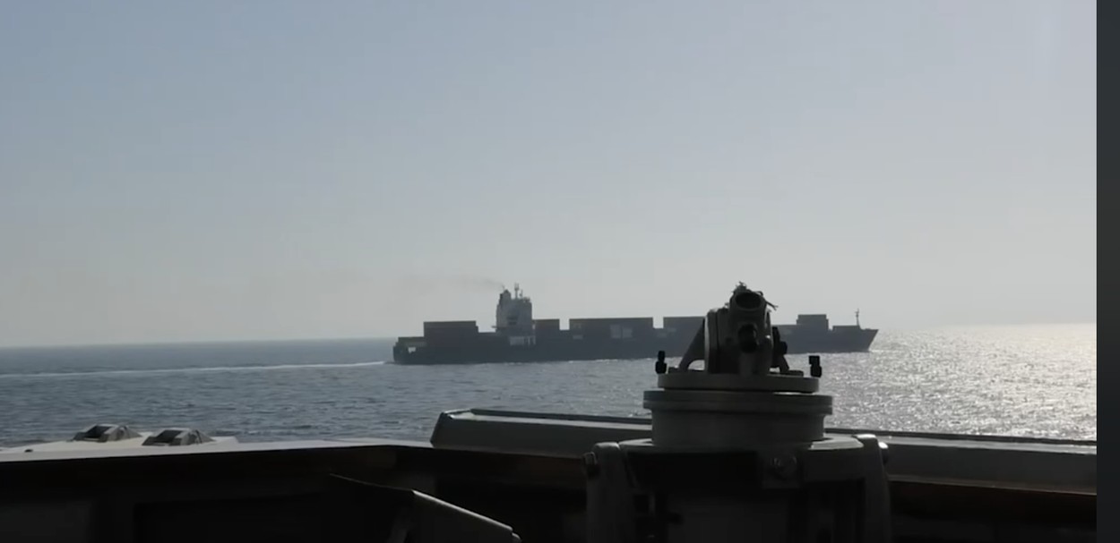 2026年4月19日,美国海军拦截“图斯卡”号(Touska)伊朗籍货船。 (美国中央司令部视频截图)